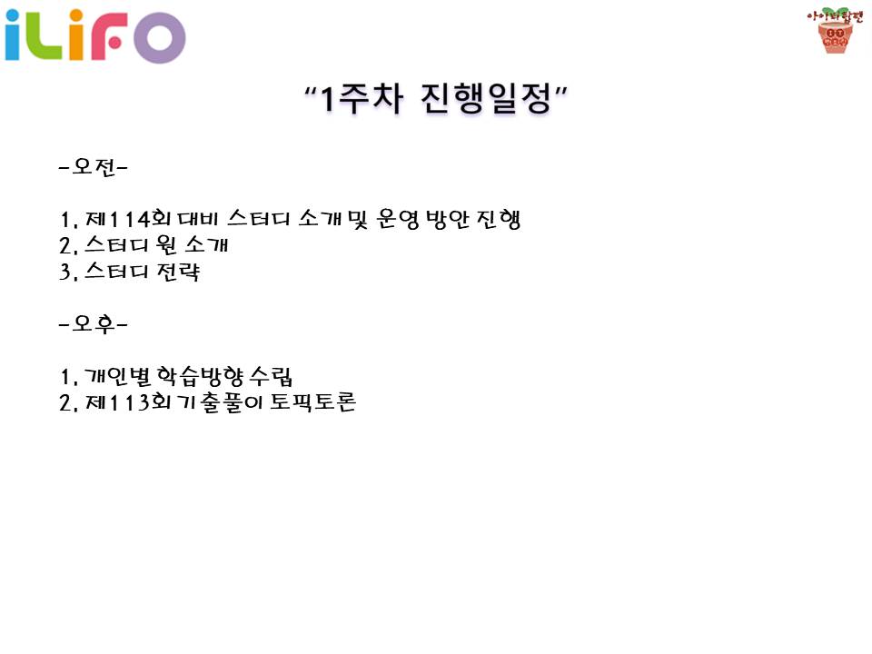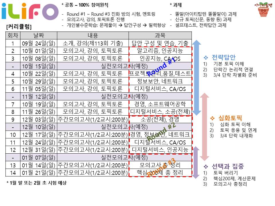 ** 14주동안 진행되는 반으로 수업(14회)+모의고사로 진행합니다.