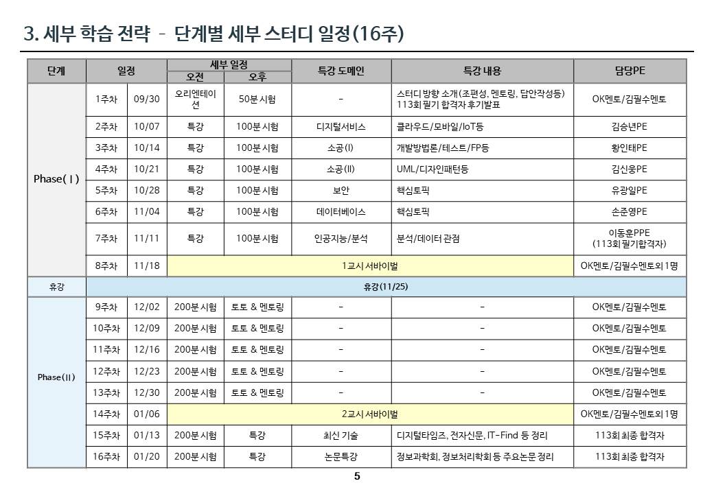 1. 일정: 9월 30일 ~1월13일(16주) + 실전같은 모의고사