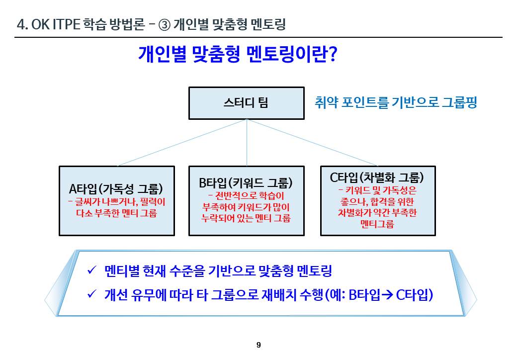 l멘티별 취약점 분석 à 맞춤형 멘토링 (토픽지식, 쓰기 취약점, 답안 Flow취약점등 멘티별 맞춤 멘토링)