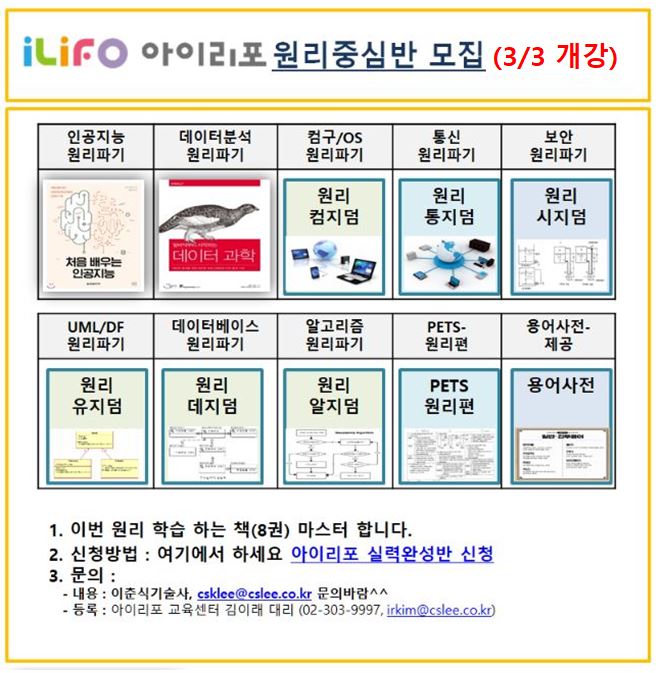 관련문의: 아이리포 교육센터 김이래 대리 (02-303-9997, irkim@cslee.co.kr)