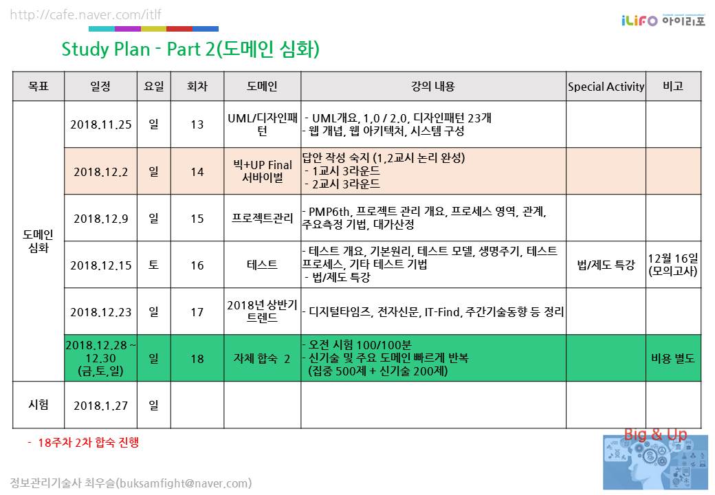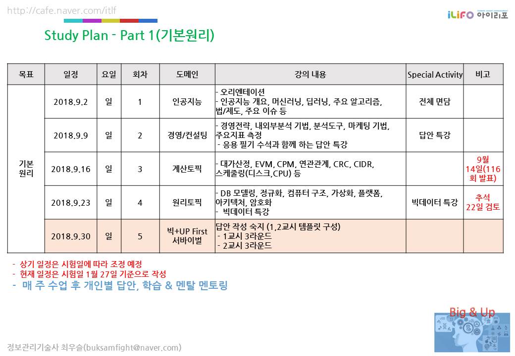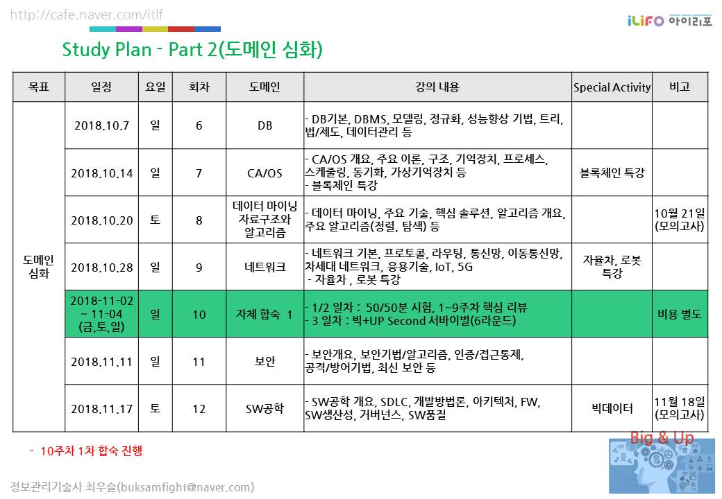1. 교육일정: 2018.09.01(일) ~ 2018.12.30(일), 18회차/144시간, 매주 일요일