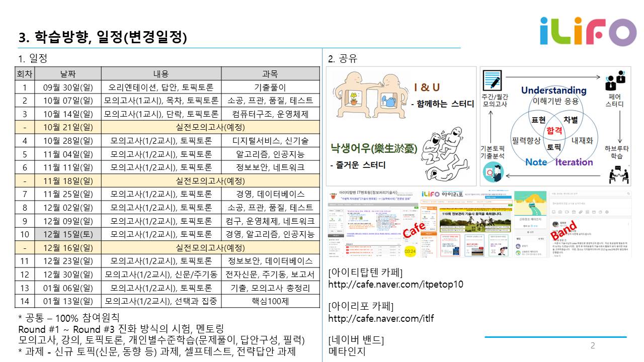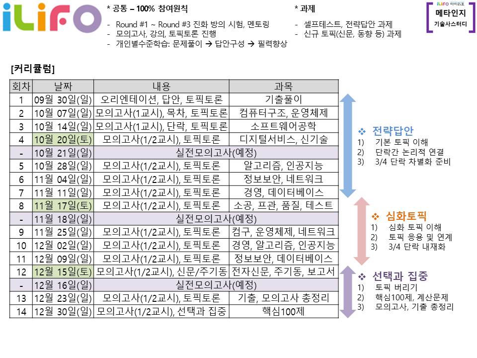 1. 교육일정: 2018.9.30~2018.12.30, 14회차/112시간(매주 일)+ 모의고사 2회 + 오픈 서바이벌 1회